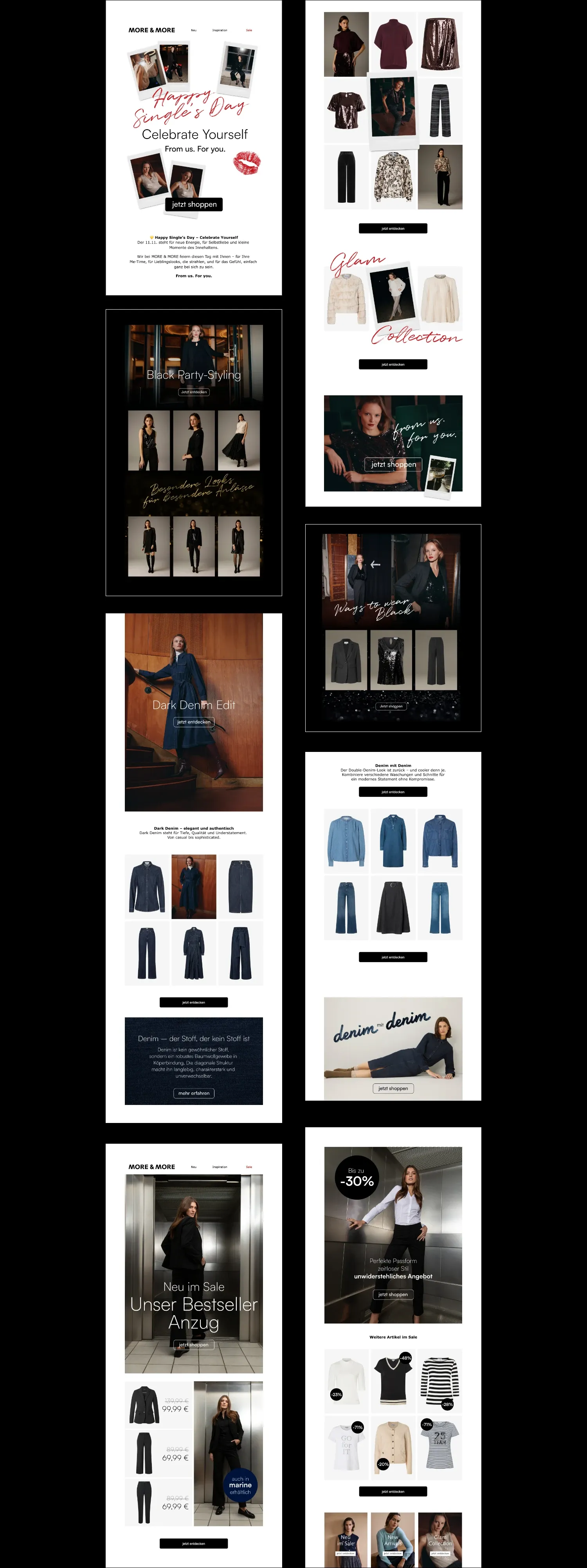 Für die Gestaltung der Newsletter bringen wir die Looks und Trends von More & More auf den Punkt – klar, inspirierend und so, dass Lesenden sofort Lust bekommen, mehr zu entdecken.